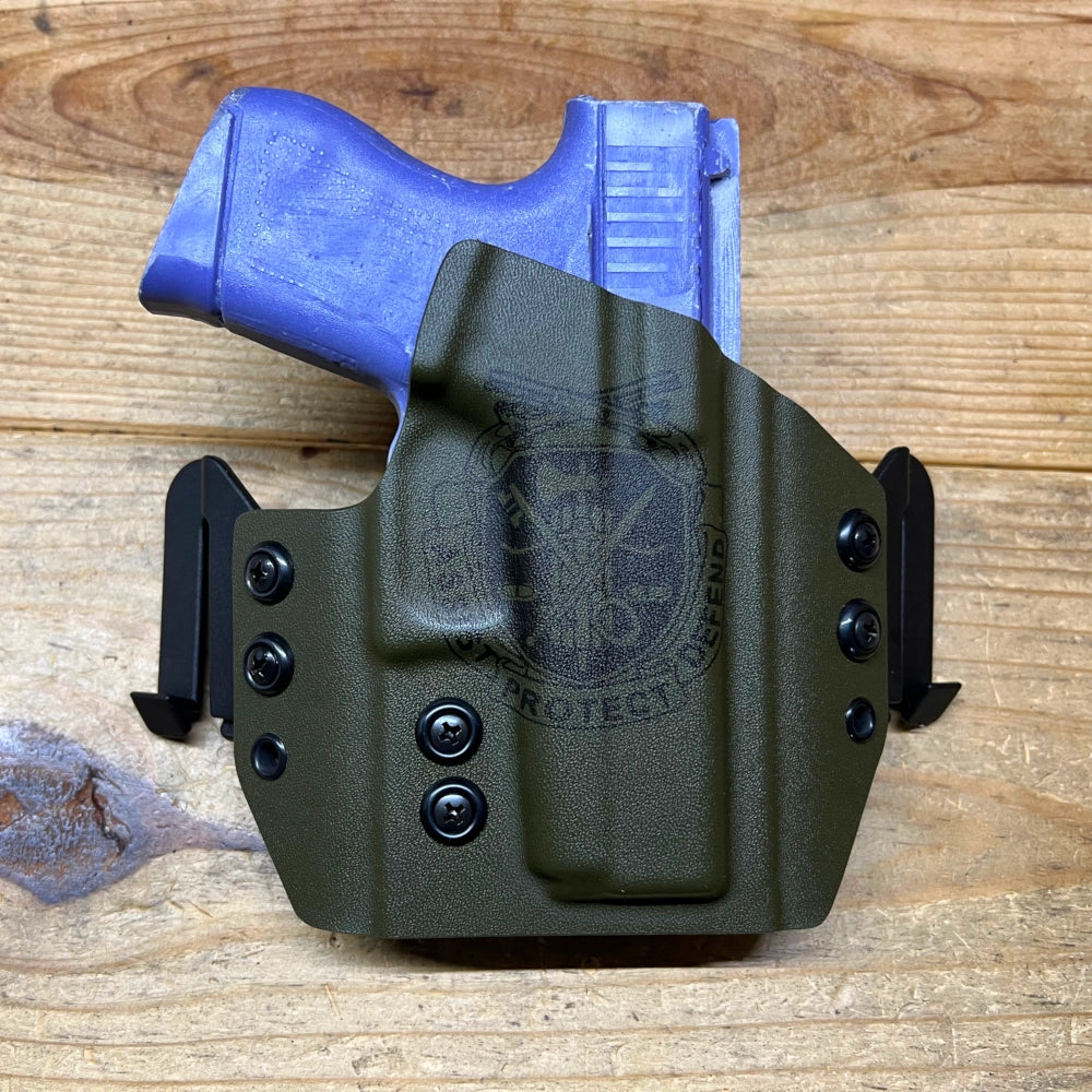 Wash with lukewarm water to remove dirt and grit from inside holster to avoid firearm finish wear. Dry with cloth and apply thin film of oil to metal hardware and kydex material.